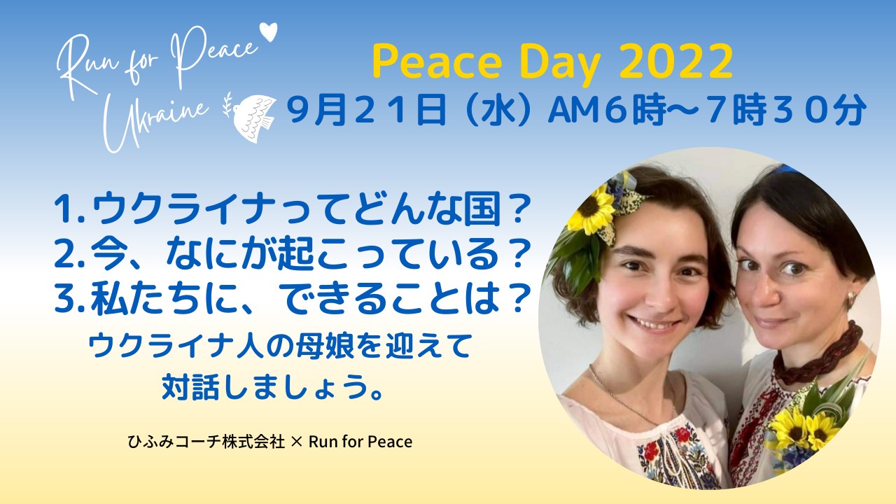ピースデイ(国際平和デー)に、ウクライナのヤンナちゃん親子を招いて対話会を開催します。
