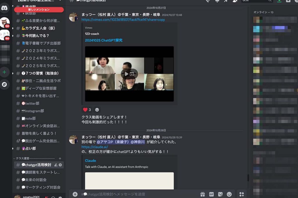 最新AIの変化を追い続け、ツールのリリース情報や使い方を紹介し合い、学び合うクラス。